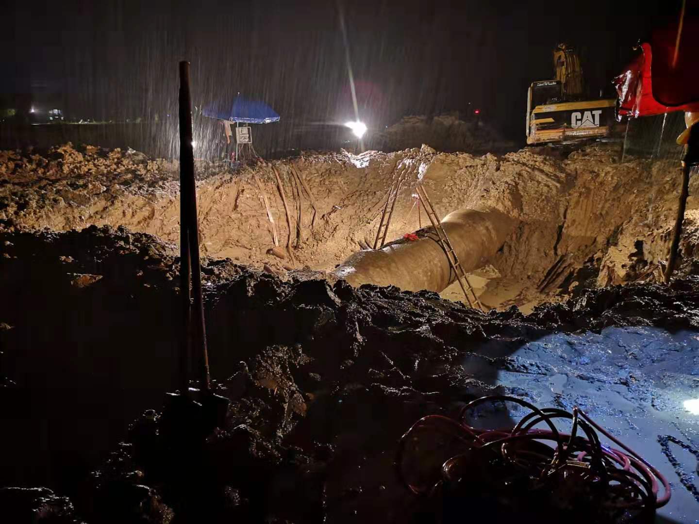 這次搶修是自來水建廠以來難度最大的,一是甘塘村剛好在打路不準勾機等材料運輸車通過,新橋閘設有限高桿,拆除浪費了好幾個小時。二是搶修現(xiàn)場在湖洋田中央,搶修機械材料運輸通過非常困難,很多材料是由人工徒手扛過去的。三是昨晚意外的雷雨大風影響,因此延遲了搶修進度。帶來的不便和影響,我司深表歉意!