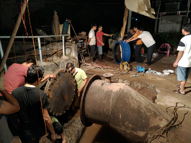 葉塘甘塘村主管道DN800鋼管連夜搶修
